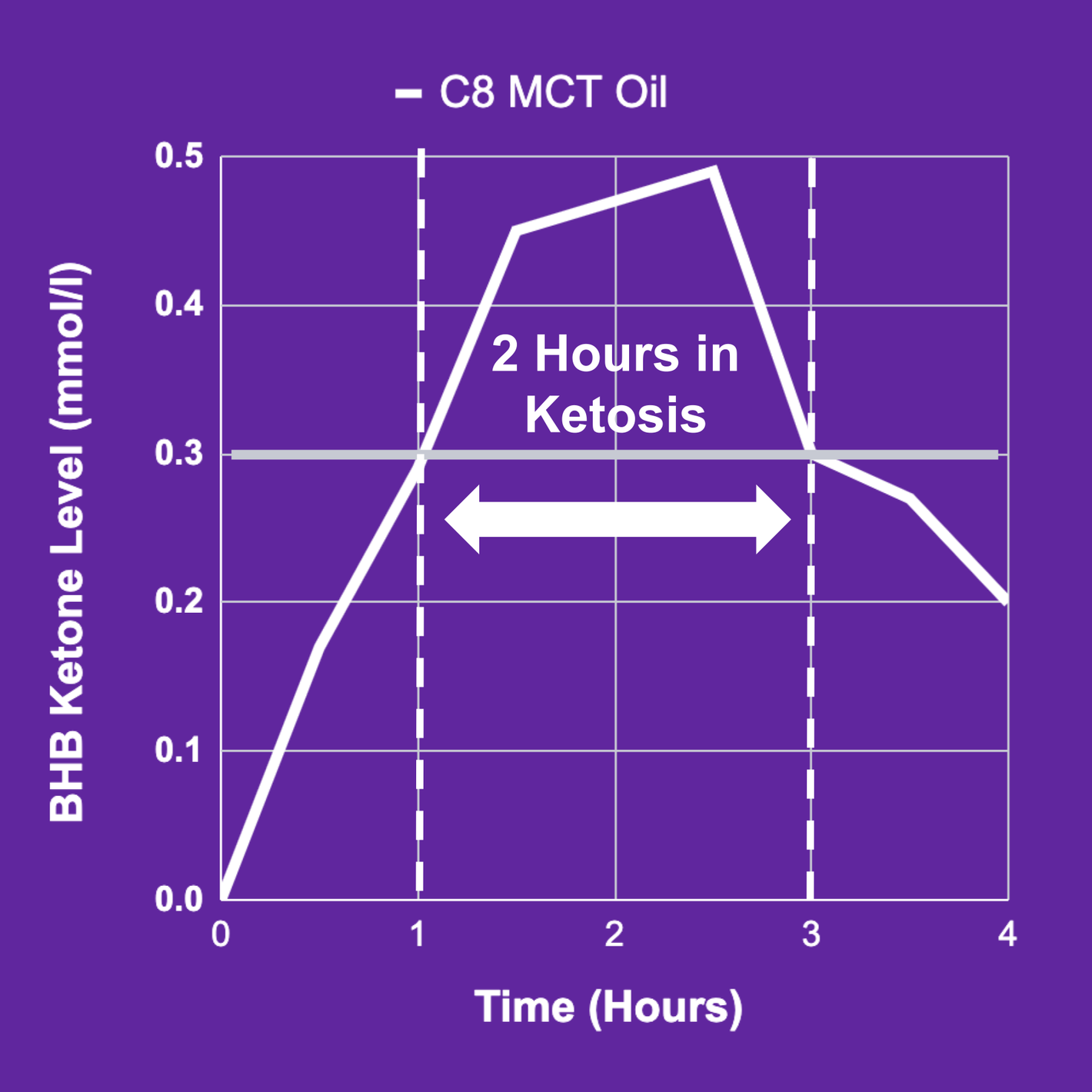 ◉ Once in ketosis, Pure C8 MCT will keep you there for ~2 hours.